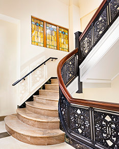 Datant de 1915, le bâtiment est situé dans le quartier historique des imprimeurs. Après avoir acquis la propriété, l’Église a entrepris un travail de 26 000 heures pour une restauration complète.