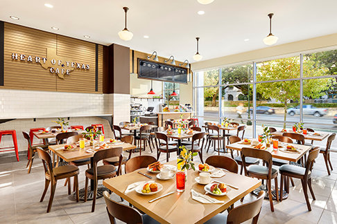 Le rez-de-chaussée de la dernière Org idéale du Texas brille de mille feux avec ses grandes baies vitrées et offrira un accueil amical aux plus de 70 000 personnes qui passent devant chaque jour.
